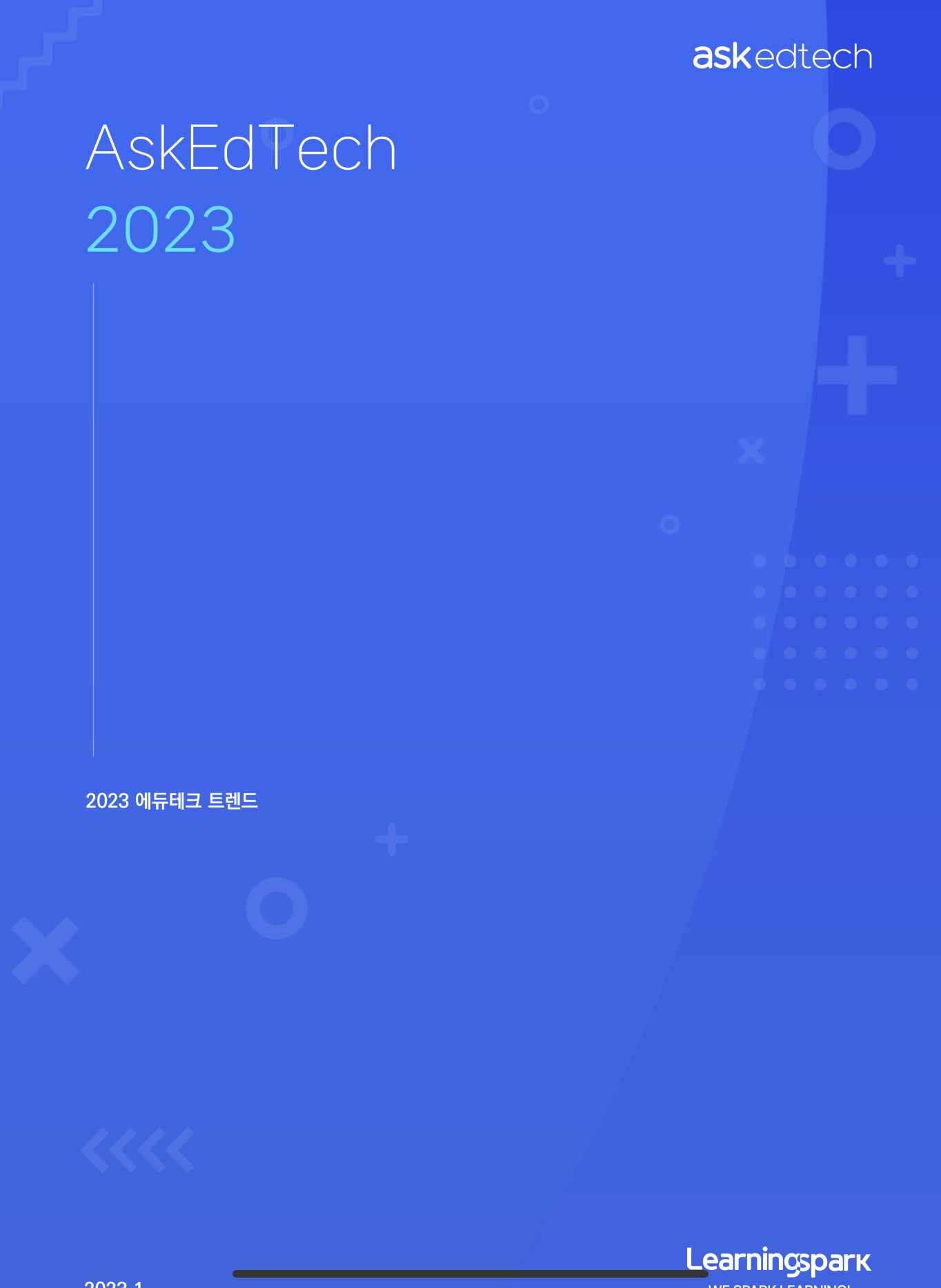 에듀테크 트렌드 보고서 [AskEdTech 2023] 러닝스파크가 그간 에듀테크 리서치와 컨설팅으로 얻은 인사이트를 담아 2023 에듀테크 트렌드 분석을 담은 보고서를 펴냈습니다. 교육공학박사인 러닝스